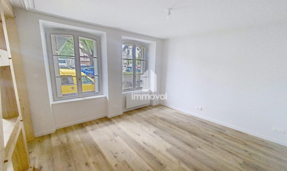 IMMOVAL vous propose, dans le quartier de la Petite France, Place Henri Dunant, un appartement 2P au rez-de-chaussée de 44.12m² Il se compose d'une entrée, d'un séjour, d'une chambre, d'une cuisine et d'une salle de bains avec toilette. Une cave complète ce bien. Chauffage et eau chaude individuels électriques. Disponible de suite
