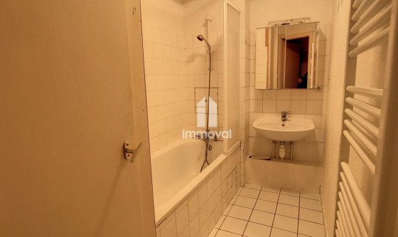 Immoval vous propose, rue du Savon, un appartement 2 pièces de 55.32m² composé d'une entrée, d'une pièce à vivre, d'une chambre, d'une cuisine équipée, d'une salle de bains, d'un débarras, et d'un WC. Chauffage et eau chaude individuels électrique. Disponible de suite.