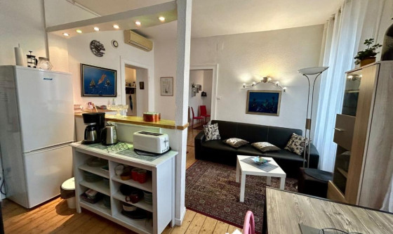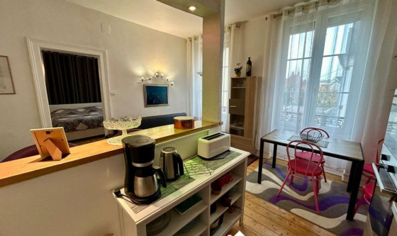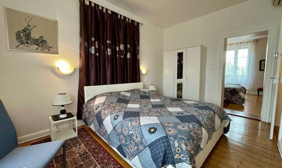 A STRASBOURG, quartier Roberstau, situé rue du Commandant Reibel, charmant 3 pièces meublé de 62 m² disposant d'une très belle hauteur sous plafond et meublé avec goût, situé au 1er étage d'un petit immeuble de 3 logements, dans une rue très au calme. A proximité des Institutions Européennes de Strasbourg, transports en communs, arrêt de bus à 4 minutes à pieds et arrêt de tram à 9 minutes à pieds. L'appartement se compose de la manière suivante : - une entrée - une cuisine équipée (four, plaques de cuisson, hotte, micro-ondes, frigidaire avec congélateur, lave-vaisselle, petits électroménagers) ouverte sur le salon avec coin repas - deux chambres - une salle de bains avec baignoire - un WC séparé Le chauffage est individuel électrique, climatisation réversible. Une buanderie commune avec machine à laver et sèche-linge est accessible au sous-sol ainsi qu'un espace pour étendre le linge. Local à vélos. Cagibi privatif. Le stationnement dans la rue est gratuit. DISPONIBLE LE 2 JANVIER 2026. Updated on 03/12/2025 Mise à jour le 03/12/2025