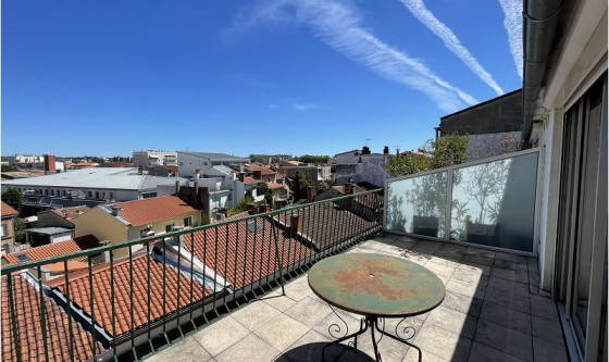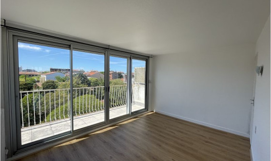 Magnifique appartement T2 au 4ème étage à deux pas de la place du Busca. Entrée, séjour entièrement en parquet ouvrant sur une grande terrasse d'environ 15m² sans vis à vis, avec belle vue sur le quartier du Busca et des Demoiselles. Cuisine ouverte équipée avec four, hotte, réfrigérateur. Chambre séparée avec balcon très lumineux, salle d'eau et wc séparé. Chauffage individuel au gaz. Appartement traversant avec belle luminosité et calme assuré. Contact agence 05 62 27 59 59