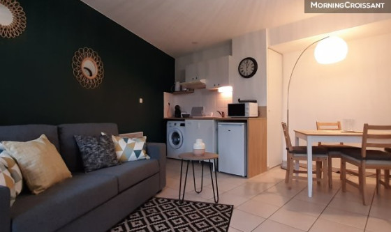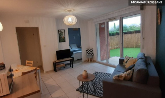 Appartement T2 de 35m²intégralement équipé dans une résidence calme et sécurisée avec place de parking, internet, piscine (été), terrasse et petit jardin privatif. Il est composé d'une chambre avec un lit en 140 x 200 et d'un canapé lit dans le salon. Smart TV, Canal + bouquet panorama et NETFLIX Idéal pour vos déplacements professionnels, formations ou location de moyenne durée Le lit sera fait avant votre arrivée, nous fournissons également les serviettes de toilettes et deux torchons. !! Vous n'avez plus qu'à déposer vos bagages !!