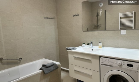 T2 meublé neuf avec balcon, parking – résidence 2025 – prêt à vivre Location possible à partir d'un mois – idéal mission professionnelle ou mobilité temporaire. Dans une résidence neuve et calme livrée en novembre 2025, appartement T2 meublé d'environ 40 m², situé à Tours Nord (quartier Christ-Roi). Appartement lumineux et confortable, avec balcon exposé sud-est donnant sur jardin intérieur et place de parking privative en sous-sol sécurisé. Logement entièrement équipé et prêt à vivre, idéal pour un séjour de plusieurs semaines ou plusieurs mois. Le logement • séjour lumineux avec canapé convertible et TV murale 55'' • cuisine ouverte entièrement équipée (plaques induction, four, micro-ondes, grand réfrigérateur, cafetière, bouilloire, vaisselle) • espace repas / bureau • chambre avec lit 160×200 confortable et rangements • salle de bain avec baignoire, meuble vasque, sèche-serviettes et machine à laver / sèche-linge • entrée avec rangements et miroir • balcon calme avec vue sur jardin intérieur L'appartement est entièrement meublé et équipé : électroménager complet, vaisselle, aspirateur, fer et planche à repasser, rangements. Les plus • résidence récente (2025) • balcon calme donnant sur jardin intérieur • parking privé en sous-sol sécurisé • appartement lumineux et confortable • nombreux rangements • commerces et tramway à proximité • centre-ville de Tours accessible en environ 5 minutes en tramway Idéal pour • mission professionnelle à Tours • mobilité professionnelle • stage longue durée • séjour temporaire entre deux logements Conditions de location Location meublée pour séjours de moyenne durée (1 à 10 mois). Loyer : 1 090 € / mois tout compris Incluant : • charges de copropriété • électricité • gaz • internet • place de parking Appartement prêt à vivre : il ne reste qu'à poser ses valises.