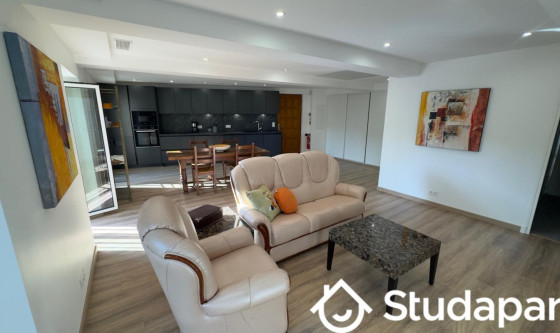 Vallauris, dans immeuble de ville, bail mobilité colocation étudiante, 3 pièces meublé comprenant un grand séjour, cuisine équipée ouverte, grand placard, wc indépendant, une salle d'eau, 2 chambres avec placard. Updated on 23/10/2025 Mise à jour le 23/10/2025