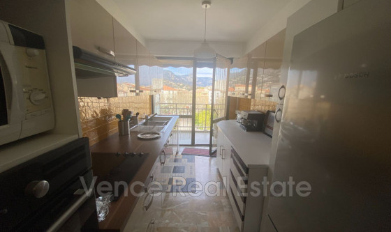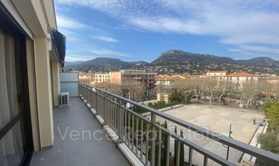 T2 libre en octobre: situé sur la place centrale de Vence, avec une vue magnifique sur les baous, c'est le coup de coeur assuré ! Au centre-ville de Vence, place du grand jardin, au dernier étage, cet appartement meublé et tout équipé est idéal pour découvrir la région. Cuisine indépendante, chambre, WC indépendant, lave-linge. Grand balcon qui fait toute la largeur de l'appartement. Cave, et 1 place de stationnement Loyer 1250€/mois avec la place de parking, caution 1250€