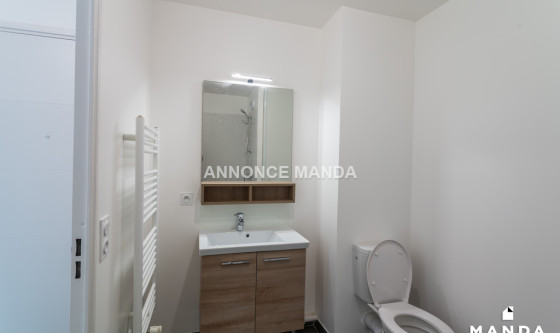 Logement Manda ! A quelques minutes de la gare de Villenave-d'Ornon, Manda propose un T2 en location chemin de Leyran. Situé au 1er étage avec ascenseur, cet appartement neuf vous sera loué non meublé. L'entrée ouvre sur le couloir desservant les pièces et disposant d'un placard intégré. La pièce de vie est grande et lumineuse, et dispose d'une large baie vitrée ouvrant sur une terrasse couverte. Cette dernière a une vue dégagée et arborée, et aucun vis-à-vis. La cuisine est ouverte sur le séjour et dispose déjà d'un évier, d'une plaque de cuisson surmontée d'une hotte, de rangements et des espaces pour tous vos nécessaires de cuisine. La chambre est claire, d'un beau volume, et propose une large fenêtre exposée comme le séjour ainsi qu'un placard intégré sur toute la hauteur. La salle de bain dispose d'une vasque sur meuble de rangement, d'une cabine de douche, d'un miroir et d'un sèche-serviettes chauffant. Les WC sont dans la salle de bain. Un parking en sous-sol est rattaché à cet appartement. Très belles prestations pour ce T2 en location : appartement neuf dans résidence neuve et sécurisée, grandes pièces, bien agencé, lumineux, calme, terrasse sans vis-à-vis, parking couvert, rangements... La gare de Villenave-d'Ornon est à 17 minutes à pied, tous les commerces sont à deux pas, les grands axes de circulation sont en accès direct et vous serez dans Bordeaux en une vingtaine de minutes. Idéal pour un couple, n'attendez plus pour déposer votre candidature ! Référence du bien : MANDA-08102