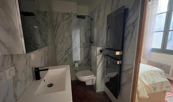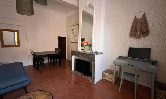 Aix-centre historique, dans un hôtel particulier aixois classé, appartement meublé entièrement rénové type 3 de 61.36m2 habitable situé au deuxième étage sans ascenseur. Il se compose d'un séjour, une petite cuisine neuve équipée : plaques à induction, réfrigérateur, four/micro-onde, lave-vaisselle, un couloir qui dessert une buanderie, 1 chambre avec un grand lit avec placard, une chambre avec un lit simple et une salle d'eau. Très belle hauteur plafond. Chauffage et eau chaude électrique individuelle.