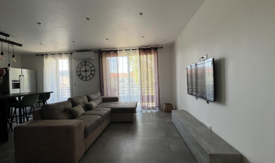 Immo de Corse AIACCIU vous propose à la location ce très joli F3 meublé au 1er étage en très bon état d'une superficie de 57.00 m2. Il est traversant et dispose du double vitrage, il se compose d''une entrée, un séjour avec cuisine américaine climatisé donnant sur un balcon, un dégagement avec placard, deux chambres dont une avec balcon, une salle de douches, un WC indépendant avec lave mains. La résidence est sécurisée et en très bon état d'entretien. Les informations sur les risques auxquels ce bien est exposé sont disponibles sur le site Géorisques : www. georisques. gouv. fr