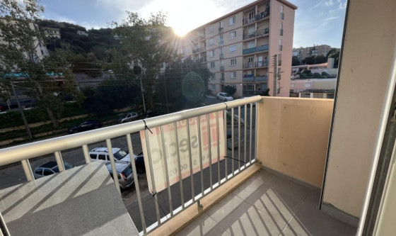 IMMODECORSE AIACCIU propose a louer F3 vide d'une superficie de 55.00 m2 au 2ème étage comprenant une entrée, un séjour avec climatisation et terrasse, une cuisine aménagée et semi équipée avec cellier dédié, un dégagement, deux chambres avec placard, une salle de douches, un WC. une cave en sous sol complète le bien. double vitrage, cumulus, fibre, volets roulants. Les informations sur les risques auxquels ce bien est exposé sont disponibles sur le site Géorisques : www. georisques. gouv. fr