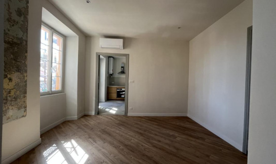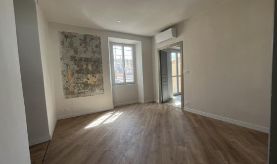 Immo de corse AIACCIU vous propose à la location dans le secteur prisé de la place du Diamant ce bel F3 rénové d'une superficie d'environ 59.75 m2 situé au 5ème et dernier étage sans ascenseur. Traversant, il se compose d'une vaste entrée, un séjour climatisé, une cuisine aménagée et semi équipée d'une plaque, d'une hotte et d'un four donnant sur le balcon avec cellier dédié à la machine à laver, une chambre avec climatisation et rangements, une salle de douches avec WC, une chambre. L'ascenseur a été voté par la copropriété Les informations sur les risques auxquels ce bien est exposé sont disponibles sur le site Géorisques : www. georisques. gouv. fr