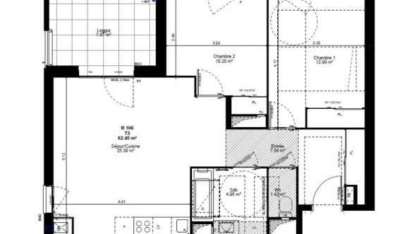 B106 OXYGENE EUR A SAISIR JOLI T3 DE 62M²AVEC BALCON A L'INTERIEUR DEURUNE RESIDENCE NEUVE BBC DE STANDING. Il est composé d'une entée avec un grand placard, pièce de vie, une cuisine US (meubles haut et bas, hotte, plaque de cuisson et four) donnant sur le balcon, deux chambres en sol parquet avec placard, une salle de bain aménagée avec meuble sous vasque et sèche serviette. Deux places de parking en sous-sol. Chauffage individuel gaz. Visiophone. Consommation d'énergie totale entre 590-840EUR par an (prix moyens des énergies indexés au 2021.2022.2023). Les informations sur les risques auxquels ce bien est exposé sont disponibles sur le site Géorisques : www. georisques. gouv. fr