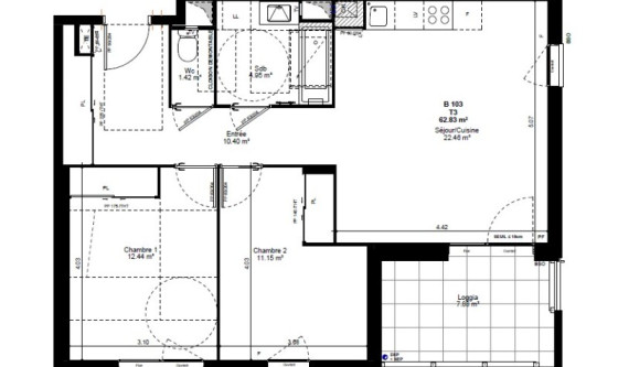 B103 OXYGENE - VENEZ PROFITER DEURUN JOLI T3 DE 62 M² AVEC BALCON A LEURINTERIEUR DEURUNE RESIDENCE NEUVE BBC DE STANDING. Il est composé dEURune entrée avec placard, une belle pièce de vie dEURune cuisine US (meubles haut et bas, hotte, plaque de cuisson et four) donnant sur la terrasse, deux chambres en sol parquet avec placard, une salle de bain aménagée avec meuble sous vasque et sèche serviette. Deux places de parking en sous-sol. Chauffage individuel gaz. Visiophone. Consommation d'énergie totale entre 500-730EUR par an (prix moyens des énergies indexés au 2021.2022.2023). Les informations sur les risques auxquels ce bien est exposé sont disponibles sur le site Géorisques : www. georisques. gouv. fr