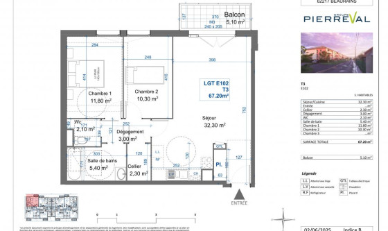 À louer, appartement type 3 d'une superficie de 67 m², située dans un secteur calmeà Beaurains.