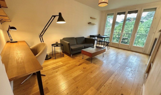 Le Cabinet Ginet vous propose à la location ce très bel appartement T3 meublé de 54,40 m², entièrement rénové, situé au 4ème étage avec balcon sans vis-à-vis. Ce bien se compose d'une entrée desservant une agréable pièce de vie de 22,95 m², lumineuse et fonctionnelle, avec cuisine ouverte entièrement aménagée et équipée (lave-vaisselle, four, plaque de cuisson, hotte, réfrigérateur-congélateur, vaisselle). Le séjour comprend : canapé, bureau, table et chaises, donnant sur le balcon avec une jolie vue sur le parc. L'appartement dispose de deux chambres confortables de 10,55 m² et 11,35 m², ainsi qu'une salle d'eau avec douche, meuble vasque, sèche serviette et lave-linge. Les WC sont séparés. Un parking collectif à emplacements libres est accessible au sein de la copropriété. Les charges comprennent l'eau froide, l'eau chaude et le chauffage, qui sont collectifs. DISPONIBLE Appartement soumis à l'encadrement des loyers. Le loyer demandé est 890 € CC. Loyer HC : 790 € Charges : 100 € Dépôt de garantie : 1580 € Les informations sur les risques auxquels ce bien est exposé sont disponibles sur le site Géorisques : www. georisques. gouv. fr