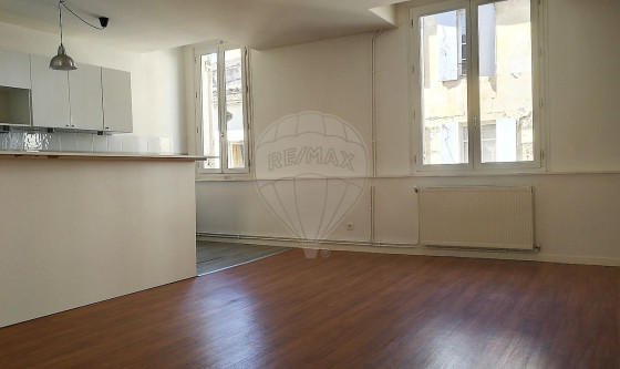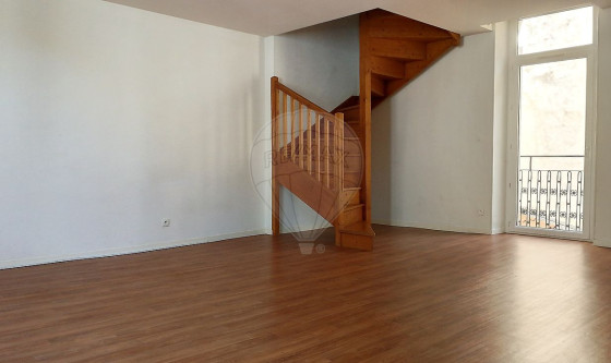 Au coeur du centre ville de Cadillac, très beau duplex comprenant spacieuse grande pièce de vie avec cuisine ouverte aménagée et équipée, 2 chambres en sous pente, salle de bains et wc.
