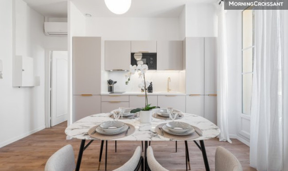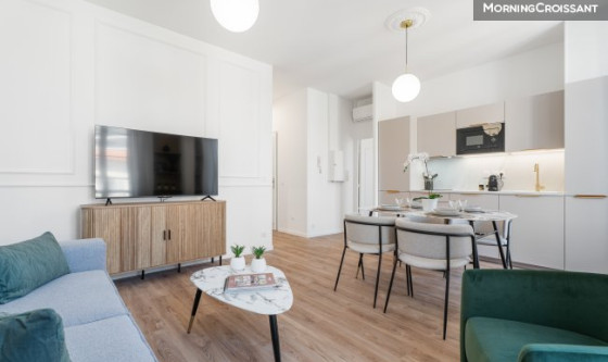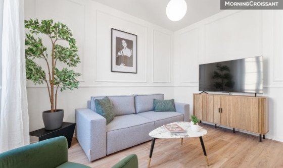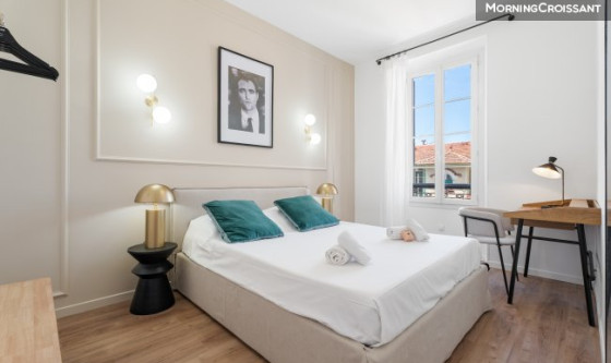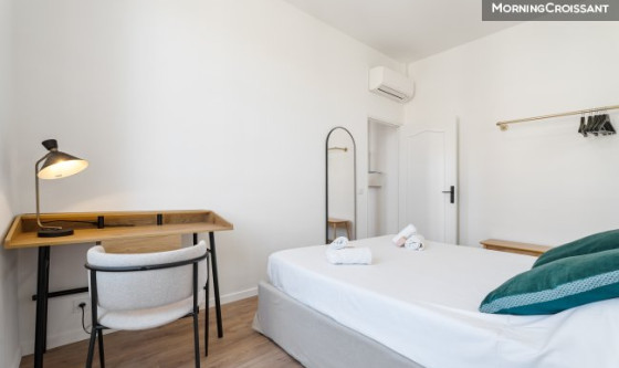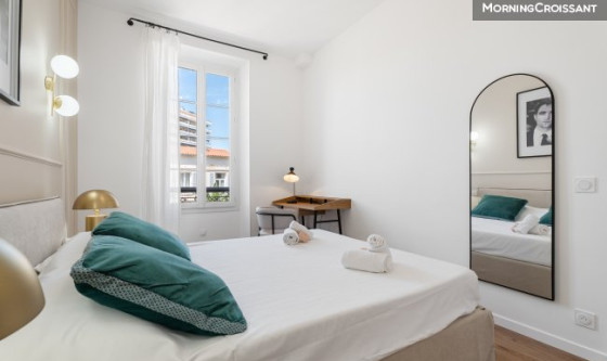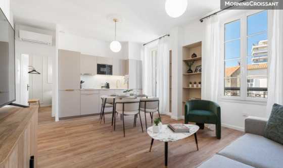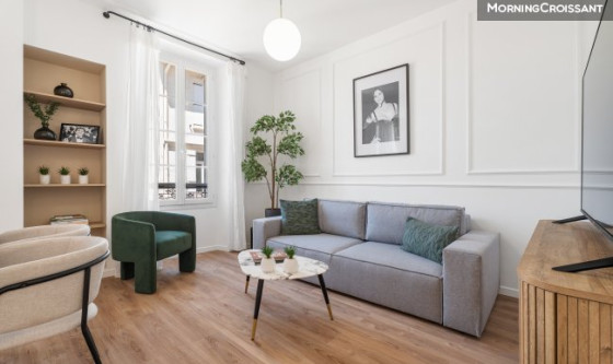 Cet appartement charmant, entièrement refait à neuf par un architecte d'intérieur, est situé au premier étage d'un immeuble sans ascenseur et peut accueillir jusqu'à 4 personnes, offrant un cadre paisible avec vue sur cour. Avec une surface de 53 m², ce logement se compose de : - un espace de vie baigné de lumière avec salon et salle à manger, -une cuisine parfaitement équipée (machine à café, bouilloire, four micro-ondes, plaques de cuisson, lave-vaisselle, réfrigérateur, congélateur), - une chambre avec un lit de 160 × 200 cm, - une deuxième chambre avec un lit de 160 × 200 cm, - une salle de bain avec douche et WC, - bureau de travail, - aspirateur, lave-linge, sèche-cheveux, fer, cintres, détecteur de fumée, - TV, Wifi, air conditionné, radiateurs. Le logement ne dispose pas d'une place de parking privé mais de nombreuses places de stationnement gratuites sont disponibles à proximité. Des frais de gestion d'un montant de 689€ seront facturés pour les locations en moyenne durée. Ces frais comprennent l'état des lieux d'entrée et de sortie ainsi que les frais de ménage.