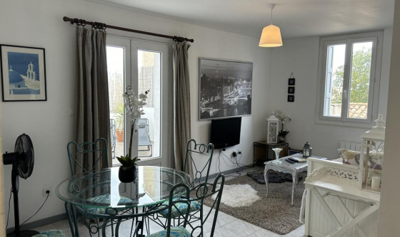 Au 2ème et dernier étage d'un petit immeuble proche du centre-ville - Superbe appartement très lumineux avec grande terrasse privative - entièrement renové, meublé et équipé - Composé d'un séjour, d'une cuisine entièrement équipée, de 2 chambres et d'une salle d'eau - Immense terrasse - Appartement entièrement rénové - Double vitrage - Chauffage électrique - Disponible immédiatemment