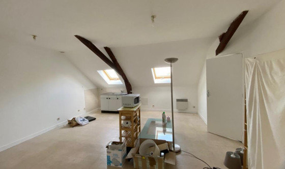 En centre-ville, appartement au 2ème étage comprenant : un couloir d'entrée desservant un séjour avec coin cuisine, 2 chambres, une salle d'eau, WC séparés. Chauffage électrique. Velux bois double vitrage et fenêtre PVC double vitrage. CHARGES = TOM + EAU + ELEC ET ENTRETIEN DES COMMUNS « Les informations sur les risques auxquels ce bien est exposé sont disponibles sur le site Géorisques : www.georisques.gouv.fr ».