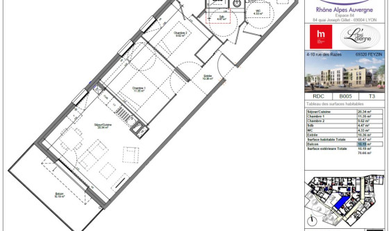 Vivez sereinement à «?L'Obsidienne?», votre nouvelle résidence senior à Feyzin. Située au coeur de Feyzin, cette résidence offre un cadre de vie à la fois serein et pratique, à proximité immédiate des commerces, des services de santé et des transports en commun. L'environnement calme et verdoyant, combiné à une accessibilité facilitée et à la vie de quartier conviviale, permet de conserver autonomie tout en profitant d'un quotidien confortable et rassurant. L'Obsidienne est une résidence Vill'Age spécifiquement conçue pour faciliter la vie des seniors et offrir un cadre de vie rassurant. Elle propose des prestations de qualité alliant confort, convivialité et sécurité. Le programme comprend 52 logements, du T1 au T3, et met à disposition des services collectifs (salle commune climatisée, animations, espaces verts?) tout en respectant l'indépendance de chacun. accompagnateur Vill'Age est également présent en journée pour faciliter votre quotidien et assurer le bon fonctionnement de la résidence. Lyon Métropole Habitat vous propose à la location un spacieux T3 de 60.47 m² sityé en rdc, confortable et spécialement adapté à la mobilité des seniors. Ce logement comprend une entrée, un séjour avec cuisine ouverte donnant sur un balcon de 10.19 m², un coin nuit avec deux chambres, ainsi qu'une salle d'eau aménagée pour le confort et la sécurité, équipée d'un receveur extra-plat, de barres de maintien, d'un siège de douche et de WC ergonomiques. Loyer : 612.60 euros (CC* sans chauffage et eau). Sans frais d'agence En option et en fonction des disponibilités, un garage boxé est à votre disposition en sus du loyer à 51,31 euros. Chauffage individuel au gaz. Condition éligibilité : Ce logement est soumis au plafond de ressource PLUS. *Loyer mensuel charges comprises (données à titre indicatif, susceptible d'évolution, sous réserve d'éligibilité). Cette résidence est exclusivement réservée aux seniors.