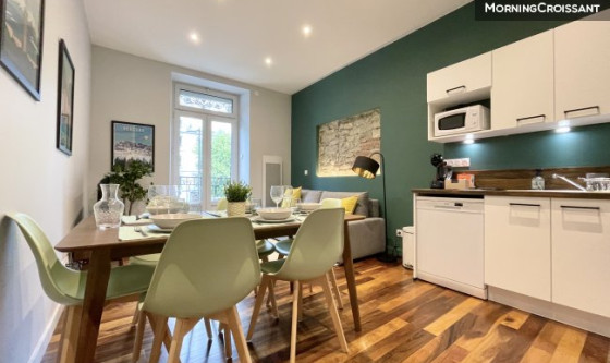 Découvrez notre superbe T3 situé Cours Jean Jaurès à Grenoble. --------------------------------------------------------------------------------------------------------------------------- **✓ Votre logement :** Les propriétaires de ce bel appartement situé au 1er étage sans ascenseur vous proposent un logement composé : - d'un charmant salon; - d'une cuisine ouverte toute équipée; - de deux belles chambres avec rangements; - d'une salle d'eau avec douche italienne; - et de WC séparés. Vous profiterez d'une jolie vue sur la bastille ! L'appartement dispose de trois espaces de couchage : - un canapé lit convertible dans la pièce à vivre; - un lit double dans une première chambre; - un lit double dans une seconde chambre. Voyagez tout confort grâce aux équipements présents dans l'appartement, tels qu'une télévision, une connexion wifi gratuite, des équipements pour la cuisine (une bouilloire, un four, un toaster, un four à micro-ondes, un lave-vaisselle, des plaques de cuisson et toute la batterie de cuisine complète, etc...), un sèche-cheveux, 1 lave linge et du linge de lit et des serviettes pour 6 personnes à l'arrivée. Nouveau ! Découvrez notre logement en vidéo ici : https://bit.ly/3CniDog --------------------------------------------------------------------------------------------------------------------------- **✓ Son emplacement : ** Se déplacer : Tram A,B,E : à proximité, arrêt Alsace Lorraine. Le stationnement est possible autour de l'immeuble (payant en journée sauf le dimanche) ainsi que dans les parkings de proximité. Vous aurez peut-être la chance de trouver quelques places gratuites dans les alentours (parking de l'Esplanade à 1km). --------------------------------------------------------------------------------------------------------------------------- **✓ Nos coups de cœur ** Appartement entièrement rénové en 2021. Sa décoration soignée et épurée. Tout équipé ! Installez -vous en ne vous préoccupant de rien ! --------------------------------------------------------------------------------------------------------------------------- **✓ A noter avant de réserver : ** Nous sommes discrets et vous avez l'accès autonome au logement. Nous sommes à Grenoble et restons disponible pour toutes vos demandes ! Les frais de ménage incluent aussi le linge de lit et de toilette, partez donc l'esprit tranquille ! En raison des consignes de sécurité sanitaire, les draps et linge de toilettes seront déposés sur votre lit. Il s'agit d'un logement solidaire ! L'intégralité des frais de ménage est reversée à deux associations (E.S.A.T. travailleurs handicapés et nettoyage solidaire).
