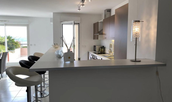 Produit rare, sur les collines de Mandelieu, dans une résidence proposant des prestations multiples: service de sécurité, piscine, tennis,... appartement meublé, très lumineux, bénéficiant d'une vue panoramique sur la mer avec une terrasse exposée Sud/sud Est de 55 m2. Cuisine ouverte sur le séjour aménagée et équipée, deux chambres avec placards aménagés, salle de bain , wc indépendant. Loué avec un emplacement de stationnement en sous sol et une cave. Provisions sur charges avec régularisation annuelle. Dossier éligible GLI ou certification Garant Me Isabelle GIRAUD +33492992628 Les informations sur les risques auxquels ce bien est exposé sont disponibles sur le site Géorisques : www. georisques. gouv. fr