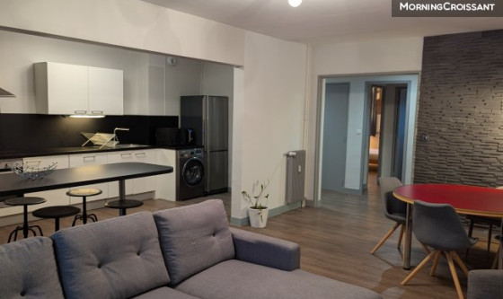 Notre appartement T3 meublé est situé en centre-ville, quartier Saint Laurent - Madeleine Il a entièrement été refait à neuf, il est meublé contemporain, il est tout équipé. Nous vous offrons une prestation de standing, vous n'avez plus qu'à poser vos valises. Il est disponible à partir de décembre 2025. 82 m², grands volumes, agréable à vivre, lumineux, double exposition, coin jour, coin nuit, Situé au 7eme étage avec belle vue sur la vieille ville et la cathédrale. Aucun vis-à-vis. L'immeuble vient de subir une rénovation complète incluant l'isolation thermique. Le DPE ne prend pas encore en compte ces travaux. L'immeuble aura le label Bâtiment Basse Consommation (DPE B). La provision de charges ne prend pas en compte la baisse de chauffage à venir. Vaste séjour avec cuisine ouverte, TV 55 pouces, loggia fermée Cuisine équipée : lave linge, lave vaisselle, four, micro-onde, frigo-congélateur, plaques induction, aspirateur, fer à repasser, machine à café, bouilloire, ustensiles et vaisselle Une chambre avec un grand lit double Une chambre/bureau avec 2 lits jumelables (possibilité de faire un grand lit ou 2 couchages séparés) Salle d'eau avec douche à l'italienne Couloir avec 2 grands placards aménagés Couettes, draps et serviettes sur demande Une place de parking privative est située en sous-sol dans la résidence. Possibilité d'une deuxième place de parking dans la résidence sur demande. La résidence est calme et sécurisée avec un gardien qui habite la résidence. Il peut réceptionner vos colis. La résidence comporte 2 ascenseurs et un garage à vélo. L'appartement est équipé de la fibre optique très haut débit