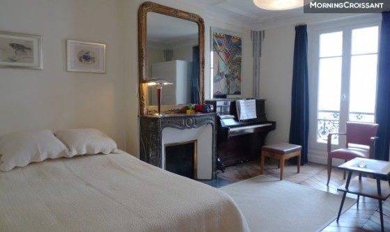 Quartier Abbesses : Cet appartement élégant de 70m² est situé au 2ème étage (sans ascenseur) d'un bel immeuble en pierres et briques à 400 mètres du fameux Moulin Rouge. La rue pavée est calme et comporte de nombreuses cours fleuries. En dirigeant ses pas vers le haut de la rue on atteint à 100 mètres la partie la plus centrale de Montmartre, la rue des Abbesses. L'appartement est traversant : il offre 4 grandes fenêtres, un parquet traditionnel en bois et 3 cheminées servent d'écrin à une décoration raffinée. L'appartement a également un balcon avec une table et des chaises pour profiter d'un verre au soleil. Il offre une combinaison rare d'avantages : •Une localisation parfaite, dans une rue tranquille, à quelques mètres du quartier commerçant des Abbesses, à une minute du Métro et proche du Sacré-Cœur. •L'appartement a 2 chambres. Il peut être utilisé jusqu'à 4 personnes adultes (2 lits doubles). Le canapé lit du salon peut servir. Pour les séjours longs, l'occupation de l'apt est limitée à 4 personne (nous contacter en cas d'enfants en plus). La seconde chambre et le salon peuvent être réunis. •L'appartement est charmant. De grandes fenêtres baignent le salon et les chambres dans la lumière. Le parquet donne un aspect chaleureux à l'ensemble. •L'appartement est entièrement équipé. Le salon offre une jolie vue sur les vieux immeubles haussmanniens et les jardins privés du voisinage. Deux grandes fenêtres s'ouvrant sur le balcon le rendent très lumineux. Il est équipé d'une télévision et d'un espace de relaxation près des fenêtres avec un canapé-lit confortable pour deux et une cheminée. Les deux chambres sont également baignées de lumières par des fenêtres et sont équipées de cheminées. La chambre principale est équipée d'un lit double. La seconde chambre est équipée d'un confortable lit queen size et d'un piano (à accorder par le locataire si besoin) et à accès au balcon. La salle de bain est équipée d'une baignoire. Les toilettes sont séparées (dans l'apt). La cuisine est équipée : four micro-onde, four, frigidaire, plaques de cuisson, lave-linge, lave-linge et séchoir. Une fenêtre donne sur une cour intérieur privée et calme. Elle offre également un coin repas bien conçu. Nous sommes une agence professionnelle de la location meublée. Ceci implique entre autre que nos locataires bénéficient, d'une réaction rapide en cas d'imprévu (ligne urgence 24/24, intervention de professionnels cas de panne, gestion professionnelle des annulations) et bien sûr d'un contrat en bonne et due forme qui garantit leurs droits. L'appartement est loué uniquement en bail hors loi 89 (non résidence principale) pour une durée d'1 an. Un nouveau bail peut être signé à l'issue avec accord des deux parties.