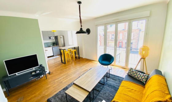 A LOUER T4 meublé rénové entièrement en 2024 lumineux et traversant Situé rue de nantes, très proche des commerces : grande surface (350m Super U), pizzeria, boulangerie (250m), banque, pharmacie… 15min à pied du centre-ville, à 50m d'une station de bus (ligne C5), 10min à pied d'une station de la ligne B. En parties commune : un séjour très lumineux aménagé, une cuisine aménagée et équipée (plaque induction, lave-vaiselle, micro-onde, frigo-congélateur, cafetière, bouilloire, ustensiles de cuisines…). La cuisine est ouverte sur le salon : Tv, canapé, fauteuil. Le wifi est fourni Un couloir équipé de 2 placards, un WC séparé, une salle de bain (douche) avec machine à laver séchante et sèche serviette. Les 3 chambres ont un accès à la terrasse. La terrasse vue dégagée, exposée sud ouest au calme donnant sur l'arrière de l'immeuble. Chaque chambre est équipée d'un lit double avec couette et oreiller, d'un bureau, d'une table de nuit, d'un dressing. Chaque pièce est équipée de volet roulant. Appartement situé au 1er étage dans un petit immeuble de 5 logements. Il est possible de mettre des vélos dans un local. Loyer CC Avance de charges : eau et taxe d'ordures ménagères : 40€/mois (régulation à la fin de l'année) Electricité-gaz : abonnement individuel (environ 150 euros/mois lissé sur l'année pour une consommation raisonnable) Le montant de la caution est 2 mois de loyers hors charges (car logement meublé). Un garant sera demandé Colocation possible pour personne soigneuse et respectueuse des personnes et des lieux. Photos supplémentaires sur demande Updated on 20/11/2025 Mise à jour le 20/11/2025