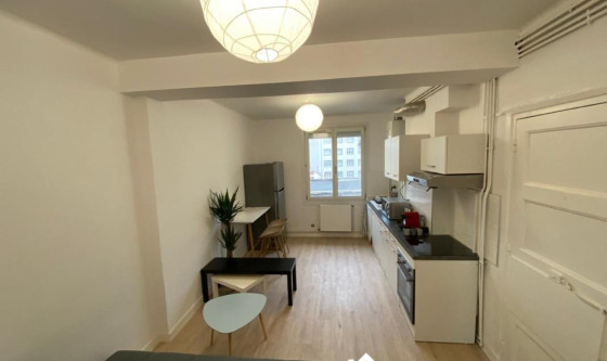 3 chambres dans un appartement entièrement refait à neuf de 65m² situé au 2ème étage. ADRESSE: -- 7 impasse du Monteil 42000 Saint Etienne EQUIPEMENT : -- TV -- Machine à laver -- Lit double -- Grande armoire dressing -- Table à manger + chaises -- Grand frigo -- Plaques de cuisson -- Hotte aspirante -- Micro-onde -- Cafetière Nespresso -- Bouilloire -- Vaisselle complète -- Canapé lit dans le salon CAF APL : -- Eligible Updated on 21/12/2025 Mise à jour le 21/12/2025