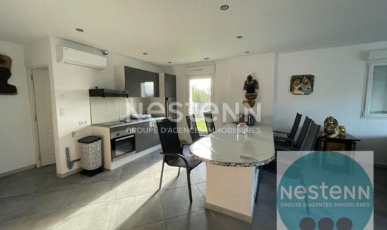 Bien immobilier construit en 2022 mettant à disposition en rez-de-chaussée un wc séparé et une vaste pièce de vie composée d'une cuisine américaine ouverte, aménagée et équipée, pièce de vie donnant accès à un jardin privatif entièrement clos. A l'étage, deux grandes chambres et une salle d'eau avec wc. Un jardinet clos et deux places de parking en extérieur viennent compléter le logement. Contacter Honorine PEAN au zéro sept 83 25 32 50 pour obtenir des informations complémentaires.