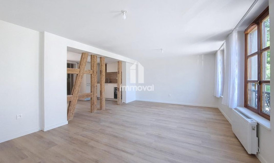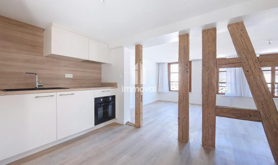 IMMOVAL vous propose à la petite France, Rue Finkwiller, un appartement trois pièces au deuxième étage sans ascenseur de 60m². Il se compose d'une cuisine aménagée et équipée ouverte, d'un séjour, de deux chambres disposant chacune d'un rangement et l'une d'un bureau, et d'une salle d'eau avec toilette. Chauffage et eau chaude individuels électrique. Disponible fin septembre 2025