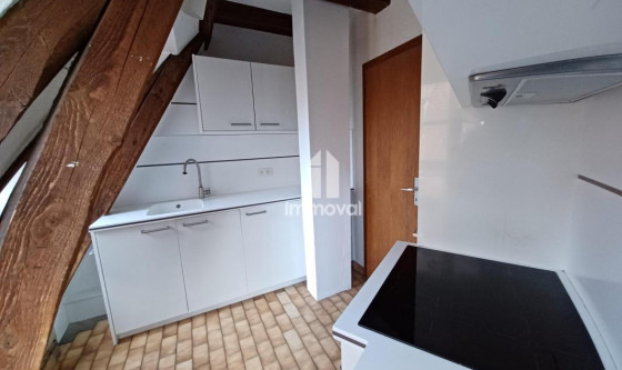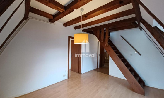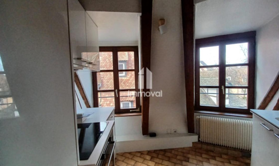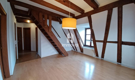 IMMOVAL vous propose à la petite France, rue Saint Marc, un appartement trois pièces de 48.55m² (70.22m² au sol) au quatrième étage sans ascenseur. Il se compose d'une entrée, d'un séjour, d'une cuisine aménagée et équipée, d'une salle de bains, de deux chambres et d'un toilette indépendant. Une cave complète ce bien. Chauffage et eau chaude individuels au gaz. Disponible de suite.