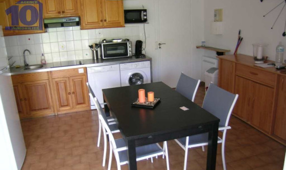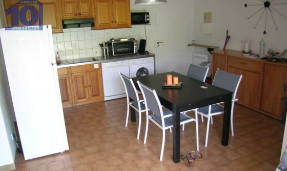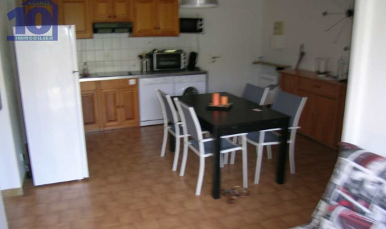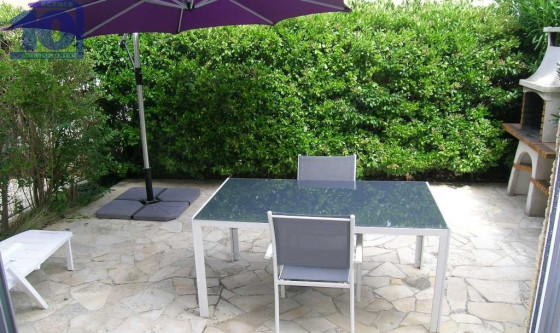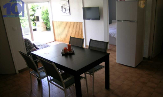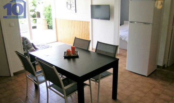 LOCATION ANNUELLE MEUBLEE EN REZ DE CHAUSSEE : Appartement rez de chaussée : En rez de jardin sans vis à vis, dans un secteur très calme à Valras plage, à 400 Mètres de la plage et des commerces, un appartement composé d'un salon séjour avec une cuisine équipée, une chambre avec lit 140 et une chambre cabine avec 2 lits superposés, une salle d'eau avec wc. Le tout donnant sur une belle terrasse avec barbecue sans vis à vis. Libre Loyer : 541 € + 50 € de charges ( EAu , teom , copro) - honoraires de visite, de constitution du dossier du locataire et de rédaction du bail : 272€ - honoraires de réalisation de l'état des lieux : 102€