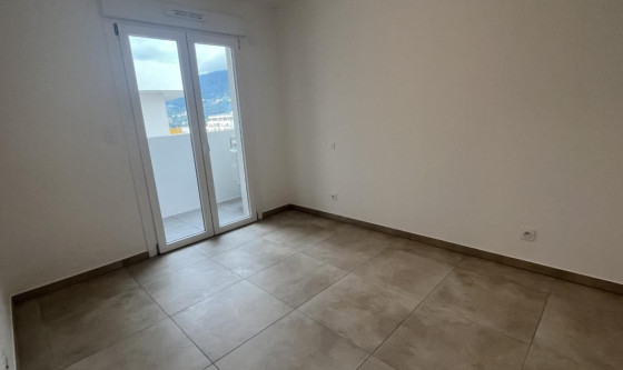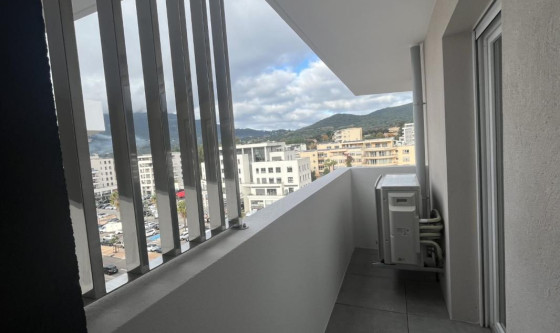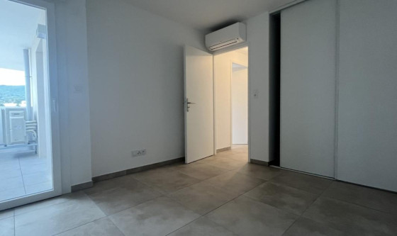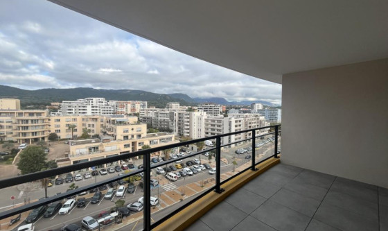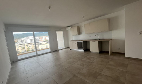 Immo de Corse AIACCIU vous propose à la location ce très joli F4 d'une superficie de 77.00 m2 situé au 6ème et dernier étage de la résidence comprenant une entrée avec placard aménagé, un WC indépendant avec lave mains, un séjour climatisé avec coin cuisine aménagée et semi équipée d'une plaque, hotte et four (en cours de livraison) ouvrant sur une terrasse de 11.00 m2, une chambre attenante au séjour climatisée, un dégagement, une salle de douches, une chambre climatisée avec placard aménagé ouvrant un balcon de 3.30 m2, une chambre climatisée donnant sur le même balcon. 2 caves au 1er étage 1 grand garage au R-3 complète ce bien. *DPE en cours par le promoteur Les informations sur les risques auxquels ce bien est exposé sont disponibles sur le site Géorisques : www. georisques. gouv. fr