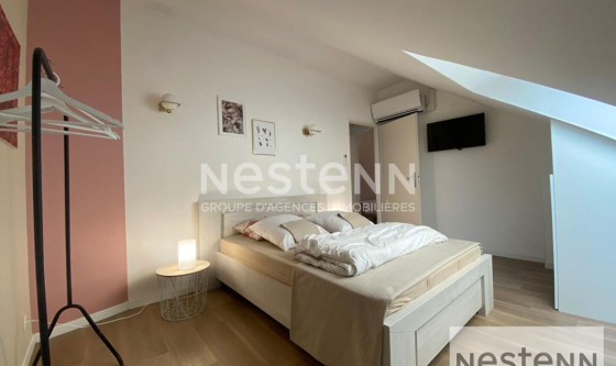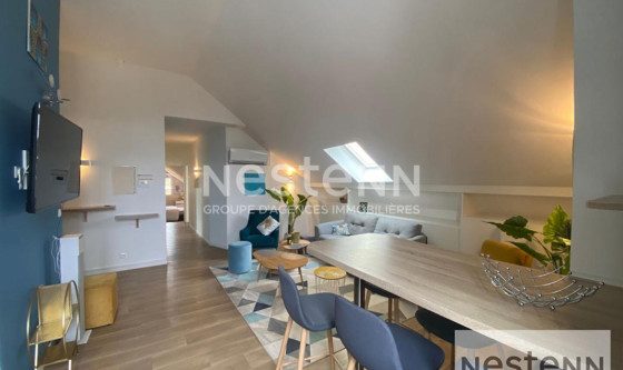 Colocation possible. Venez découvrir ce bien, rare sur le marché. En quelques mots : entièrement meublée, moderne, confortable, loyer TOUTES charges comprises (eau, chauffage, électricité, climatisation, wifi, taxe d'ordures ménagères). En plein coeur du quartier administratif, proche du centre et de toutes les commodités, cet appartement de 106m² au sol vous offre : une entrée avec deux dressings de rangements, premier wc, pièce de vie avec belle hauteur sous plafond, cuisine ouverte aménagée/équipée ainsi qu'une salle de douche avec second wc. Le coint nuit se compose de trois chambres. Une place de parking dans la cour commune. Disponible dès maintenant. Loyer : 1350 euros TOUTES charges comprises (eau froide et chaude, chauffage, électricité, climatisation, wifi, TOM) Dépôt de garantie : 2100 euros (à verser une fois) Honoraires à la charge du locataire : 781 euros (à verser une fois) Pour plus de renseignement, contactez Manon au zéro sept 66 83 73 80 ou l'Agence Nestenn de Saint-Gervais-la-Forêt au zéro deux 54 43 80 35. Les informations sur les risques auxquels ce bien est exposé sont disponibles sur le site Géorisques : www. georisques. gouv. fr