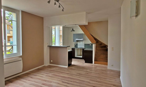 Un appartement de type F4, situé en centre-ville au 1er étage. Il se compose au rez-de-chaussée d eurosune entrée, d eurosun séjour lumineux avec cuisnie ouverte, de deux chambres, une salle de bain, WC. A l eurosétage, une troisième chambre ainsi qu eurosune salle d euroseau Un emplacement de parking Loyer mensuel HC : 870 euros + 65 euros Provision sur charges (avec régularisation annuelle) Dépôt de garantie : 870 euros Honoraires à la charge du locataire : 858 euros TTC dont 198 euros TTC pour l'état des lieux