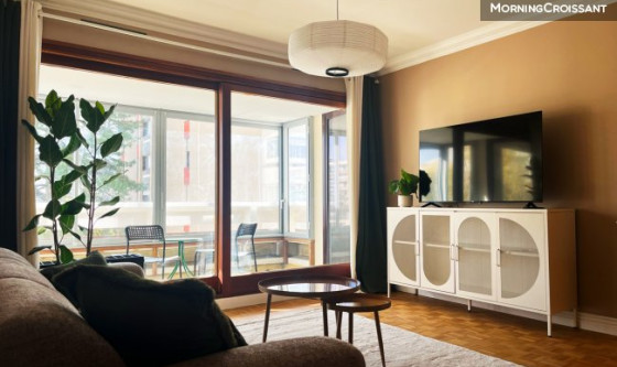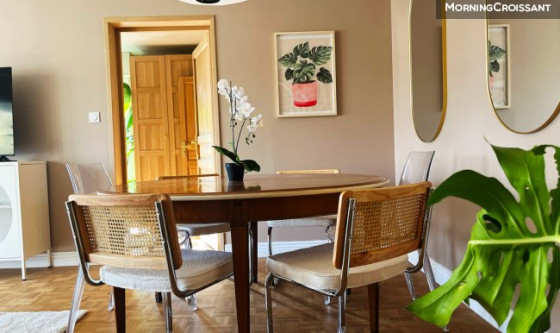Profitez de tout le confort d'un appartement entier moderne et lumineux à Caluire-et-Cuire, à 10 min de Lyon. Ce T4 de 105 m² au 2ᵉ étage d'une résidence calme a été entièrement rénové et décoré avec soin. Espace de vie Grand salon avec TV écran plat, table, chaises et canapé confortable Cuisine moderne ultra-équipée (four, micro-ondes, plaque, hotte, lave-vaisselle, frigo, congélateur, lave-linge, sèche-linge, vaisselle complète) Entrée avec nombreux rangements Trois chambres Chambre 1 : lit double, bureau, armoire Chambre 2 : lit double, bureau, armoire Chambre 3 : lit double, armoire et salle d'eau privative Salle de bain principale + WC séparé Internet haut débit, eau, électricité inclus Stationnement gratuit et facile aux abords de la résidence, périphérique à 5min en voiture Bus C1, C2, 70 - 20min de Part dieu Bus 9 - 15min d'Hôtel de ville Bus C13 - 10min de la croix rousse au pied de l'immeuble Boucherie, boulangerie, tabac, petit casino, médecin, coiffeur, phramacie au pied de l'immeuble Piscine municipale a 5 min à pied et de nombreux espaces verts