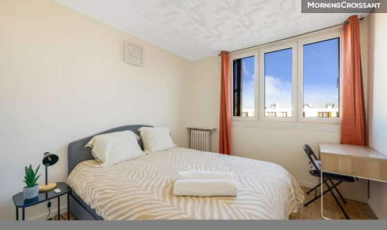 Bel appartement T4 de 67 m2 refait à neuf situé au 4ième sans ascenseur dans la commune de Champigny sur marne dans une résidence calme et sécurisée, à 10 min en bus du centre-ville et de la gare. Il offre l'avantage d'être à la jonction de Paris et Disneyland Paris. Cet appartement est meublé, vous y trouverez votre confort comme si vous étiez chez vous. Il est composé de : -3 chambres incluant chacune : un lit 160*200, un bureau une table de chevet, une lampe de chevet, linge de lit -1 cuisine équipée (ustensiles de cuisine, machine à café, grille-pain) - 1 espace salon /salle à manger - 1 salle d'eau avec toilette séparé (serviettes fournies) - 1 espace buanderie - 1 télé avec les chaines de la fibre. - 1 fer à repasser et sa table - 1 Canapé convertible pouvant donner un couchage à 1 ou 2 personnes si nécessaire. En bas de l'immeuble vous trouverez un bar tabac et à 5 min à pied une épicerie de proximité tout deux ouvert 6 jours sur 7. Un arrêt de bus se trouve en bas de l'immeuble pouvant vous amenez jusqu'à la gare.