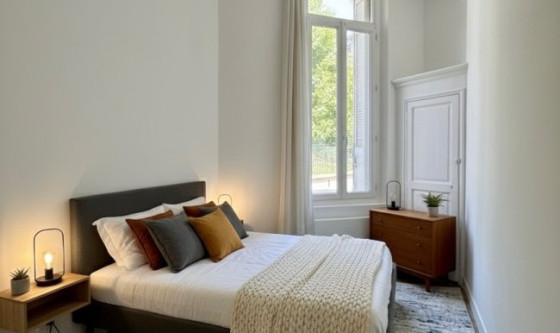 Superbe T4 de 88 m², refait à neuf, dans un charmant immeuble haussmannien. Entrée privative – comme une maison en ville ! 3 chambres | 2 salles de bains Grand salon lumineux Cuisine séparée toute équipée À 3 min de la Gare Saint-Charles, proche métro, tram, commerces et écoles.