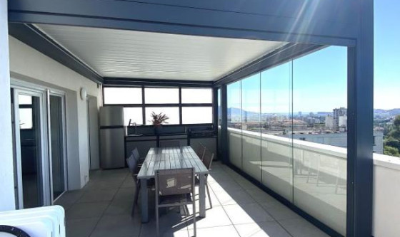 Fiche Id-UBW24918g : location Marseille, T4 duplex toit terrasse d'environ 106.00 m2 comprenant 4 piece(s) dont 3 chambre(s) + Terrasse de 124 m2 - Vue : 360? mer, colline,notre dame - Construction R?cente - Equipements annexes : terrasse - garage - parking - digicode - double vitrage - ascenseur - cellier - et Climatisation r?versible - chauffage : Electrique Pergola/Cuisine D'?t? - A louer 2 800 Euros c.c./mois dont Charges copro. : 100 Euros/mois - Classe Energie C : 111 kWh.m2.an - (DPE ancienne version) - Plus d'informations disponibles sur demande...- Mentions légales : Loyer CC (Charges comprises) = 2800 Euros/mois dont Charges de copropriétés = 100 Euros/mois - Complement de loyer (inclus) : 100.00 Euros/mois - Honoraires à la charge du locataire : 1378 Euros - Dépot de garantie : 2800 Euros - Classe Energie C : 111 kWh.m2.an - (DPE ancienne version) - Montant estimé des dépenses annuelles d'énergie pour un usage standard compris entre 750 et 1050 Euros - Affaire suivie par Mme Lisa KECHICHIAN (Agent commercial independant) - Reseau Immo-Diffusion Marseille - Pour plus d'informations, contactez notre secrétariat au 09 74 53 13 81 (Appel gratuit ou prix d'une communication locale)