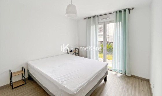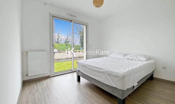 A LOUER MEUBLÉ APPARTEMENT T4 D'ENVIRON 83,18M2 AVEC TERRASSE, JARDIN PRIVATIF D'ENVIRON 100M2 AVEC UN GARAGE BOX EN SOUS-SOL (DEUX PLACES DE PARKING) QUARTIER ARLAC 33700 MÉRIGNAC Dans une petite copropriété de 2017, de 37 logements, cet appartement se compose; d'une pièce de vie TRAVERSANTE, une grande cuisine ouverte équipée, une arrière cuisine/ buanderie, 3 chambres avec placards et accès au jardin. Une salle d'eau avec wc et un wc séparé avec lave mains. Coté jardin, une TERRASSE exposée OUEST avec store bane électrique et abri de jardin. Les plus : meublé avec tout le confort : machine à laver, lave vaisselle, aspiration centralisée, store électriques .. Un accès piéton vous mène directement à l'arrêt de TRAMWAY. Votre conseiller HK HomeKare : Samantha GAUTHURON Agent commercial (Entreprise individuelle). HK HomeKare : Vente - Location - Gestion - Syndic- Mobilité