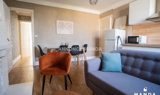Logement Manda ! Manda vous propose ce charmant T4 meublé de 57 m² en colocation, situé Avenue Georges Clemenceau à Reims, dans un quartier dynamique et bien desservi. L'appartement se compose d'un lumineux salon avec canapé, fauteuil et espace repas convivial, parfait pour partager des moments entre colocataires. La cuisine ouverte, entièrement équipée avec lave-vaisselle, micro-ondes et plaques de cuisson, offre un espace moderne et fonctionnel. Les trois chambres disposent chacune d'un lit double, d'un bureau et d'une armoire, assurant confort et intimité à chaque occupant. Vous apprécierez également la salle de bain moderne avec douche et lave-linge, ainsi que les WC séparés. À proximité immédiate du centre-ville, des commerces et des transports, ce T4 rémois n'attend plus que ses nouveaux colocataires ! Référence du bien : MANDA-69145