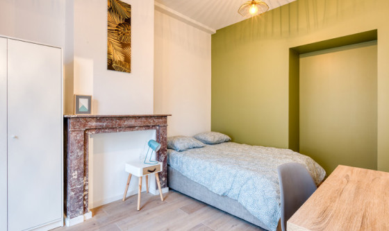 Dans un immeuble situé au 6 rue du Marechal Foch à Roubaix, nous vous proposons un appartement de 70 m2 T4 loué par chambre. 3 CHAMBRES DISPONIBLES ! L'appartement est entièrement refait à neuf et meublé, il comprend : Un grand séjour lumineux, cuisine équipée (micro-ondes, four, kit vaisselle, plaque électrique, hotte, réfrigérateur combiné, table, bar...), une salle de bain avec douche et lave-linge, Wc séparé et 3 grandes chambres, équipées chacune d'un lit double (literie complète: matelas, couette, oreillers, draps), une table de chevet, d'une armoire et d'un bureau. LE PLUS DE CETTE LOCATION: idéalement situé : en plein centre ville de Roubaix, juste à coté de la mairie. Métro à moins de 100 mètres (Ligne 2, arrêt grand place) et commerces à proximité Loyer : Chambre de 10 m2 : 370 + 30 = 400 euros CC Chambre de 12 m2 : 370 + 30 = 400 euros CC Chambre de 12 m2 : 370 + 30 = 400 euros CC TOUT INCLUS (internet, eau, et entretien des parties communes) Dépôt de garantie : 500 euros par chambre APL possible / Baux individuels Disponible de suite Honoraires de location: 303€ par chambre Mis à jour le 03/12/2025 Updated on 03/12/2025