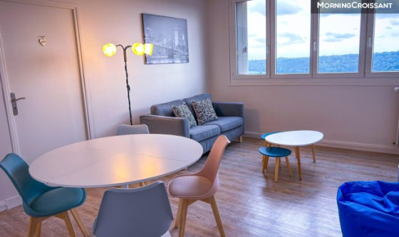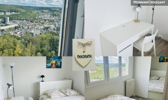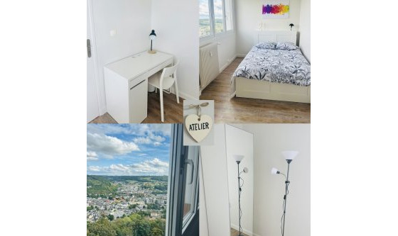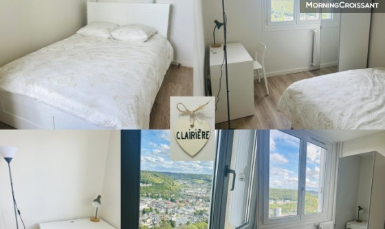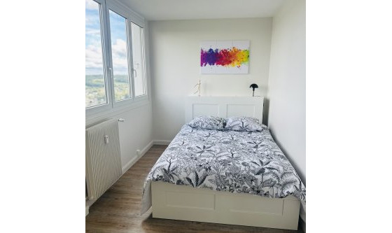 Grand appartement de 80,21 m² au 11ᵉ étage avec vue panoramique sur la vallée de Darnetal et entièrement équipée. 3 chambres meublées (lit, bureau, penderie, déco). Grand salon lumineux avec TV, cuisine moderne équipée, salle de bain + WC séparés, ainsi qu'une place de parking privée. Rien à acheter : tout est fourni (internet, électroménager, vaisselle, linge de lit). Une vidéo complète de l'appartement est disponible sur demande.