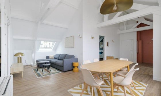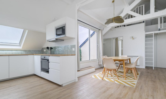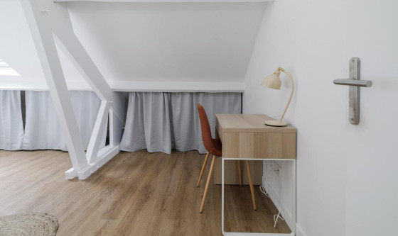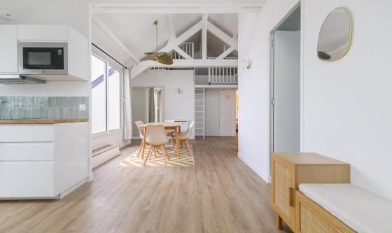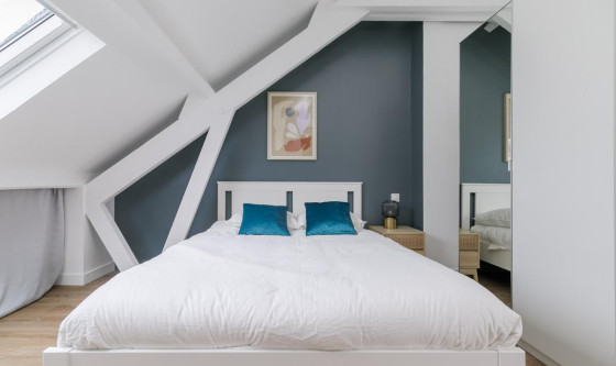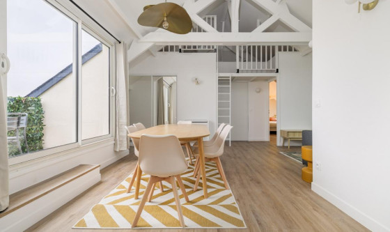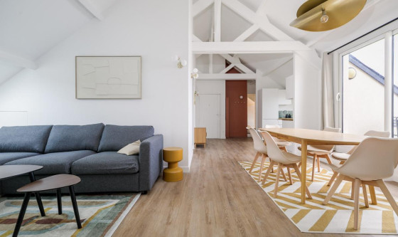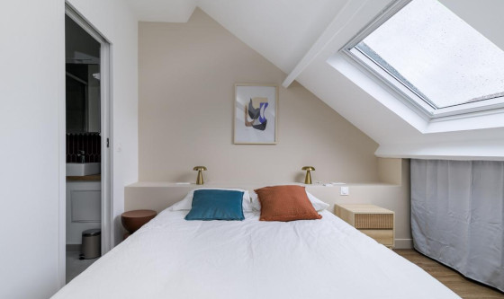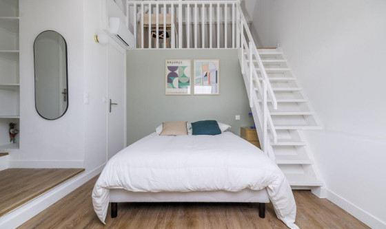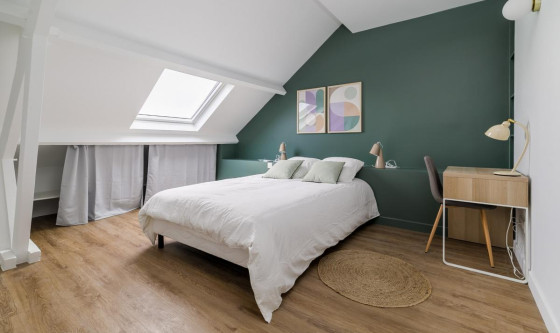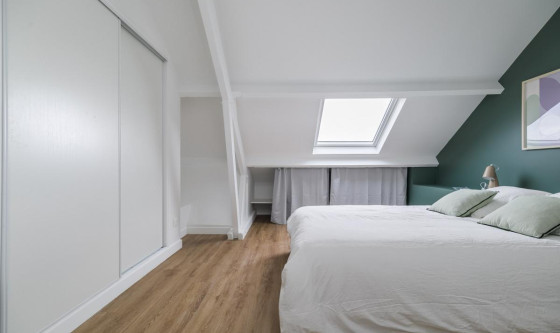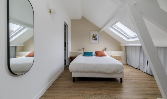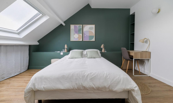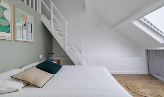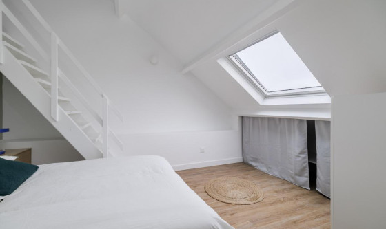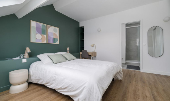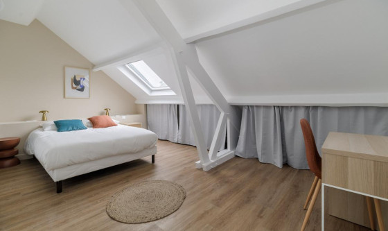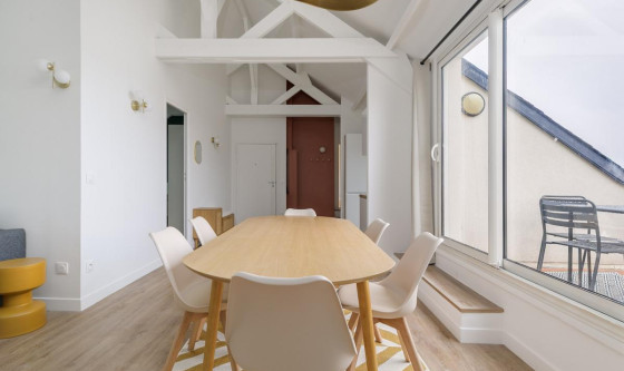 IDEAL COLOCATION Bel appartement atypique type loft, d'une surface de 101m² habitables (159 m² au sol) avec terrasse privative de 6,80 m² comprenant un grand salon, une cuisine aménagée équipée (deux réfrigérateurs, four, hotte, plaque induction, micro-onde, lave-vaisselle), 4 chambres avec chacune leur propre salle d'eau et wc, une buanderie avec lave-linge et sèche linge, une salle d'eau. L'appartement dispose d'une pompe à chaleur et climatisation. Un emplacement de parking extérieur. Beaucoup de charme, vue dégagée. Ascenseur jusqu'au 3ème étage. Immeuble sécurisé avec visiophone et vidéosurveillance. Proche transports. Bail civil uniquement, bail 89 nous contacter.