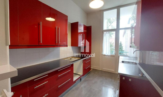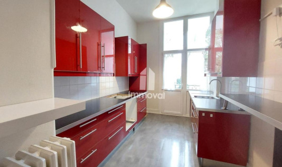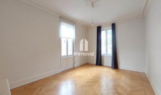 Immoval vous propose dans le quartier de l'Esplanade, Avenue de la foret noire, un appartement 5pièces de 110m² au 2ème étage sans ascenseur. Ilse compose d'une entrée avec placard, d'un dégagement, de trois pièces en enfilade sur rue, d'un toilette séparé, d'une salle de bains, de deux chambres, d'une cuisine aménagée et équipée et d'un balcon avec cellier. Une cave complète ce bien. Chauffage collectif au gaz et eau chaude individuelle électrique. Disponible de suite.