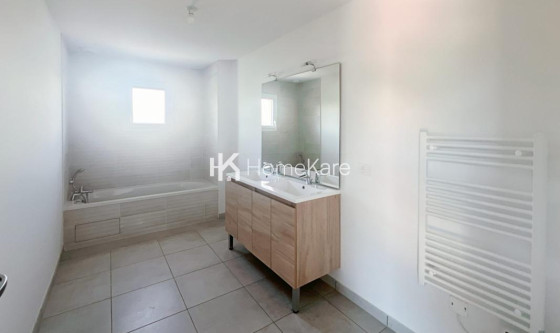 Découvrez cette magnifique maison mitoyenne 1 côté, construite en 2024, offrant 135 m² de surface habitable et un terrain de 80 m². Cette propriété de standing normal, située dans un quartier paisible, est idéale pour les familles ou les investisseurs avisés. Imaginez-vous vivre dans une maison neuve, où chaque détail a été pensé pour votre confort. Avec ses 4 chambres spacieuses, sa salle de bains et sa salle d'eau, cette maison est parfaite pour accueillir toute la famille. La cuisine américaine aménagée et équipée est un véritable atout pour les amateurs de cuisine et de convivialité. La maison dispose également d'un jardin, un espace extérieur idéal pour les jours ensoleillés et les soirées en famille. Le stationnement est assuré avec 1 place intérieure et 2 places extérieures. Les ouvertures en PVC et les portes à double vitrage garantissent une excellente isolation thermique et phonique. Le chauffage individuel assure une température agréable en toutes saisons. À proximité, vous trouverez plusieurs commodités : une maternelle et une école élémentaire à 10 min à pied, deux alimentations générales et un restaurant à 5 min à pied, ainsi qu'un médecin généraliste à 5 min à pied. Deux crèches sont également accessibles en 10 min en voiture. La fibre est éligible, garantissant une connexion internet haut débit. Ne manquez pas cette opportunité unique de vivre dans une maison neuve, spacieuse et bien située. Contactez-nous dès maintenant pour une visite ! comprenant 405 € TTC pour l'état des lieux. Loyer de base 1220 €/mois. Provision sur charges 80 €/mois, régularisation annuelle. Dépôt de garantie 1 370 €. Classe énergie A, Classe climat A Montant moyen estimé des dépenses annuelles d'énergie pour un usage standard, établi à partir des prix de l'énergie de l'année 2023 : entre 320.00 et 400.00 €. Les informations sur les risques auxquels ce bien est exposé sont disponibles sur le site Géorisques : georisques.gouv.fr. . HOMEKARE : VENTE - LOCATION - GESTION - SYNDIC
