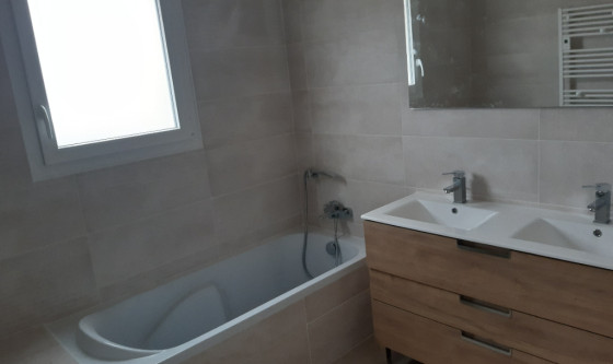 Proche de Mondonville. Nous vous proposons une villa récente , hors lotissement normes BBC, de 131m² habitable avec garage sur terrain clôturé de 515m². Elle se compose d'une cuisine meublée et équipée ouverte sur le séjour/salon (total de 48,46m²), un cellier , une suite parentale en RDC avec dressing et salle d'eau attenante, 3 chambres à l'étage avec placards et une salle de bain . Le chauffage se fait par pompe à chaleur, climatisation réversible. Libre au 23 mai 2026.